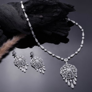 Floral Diamond Drop Necklace Set